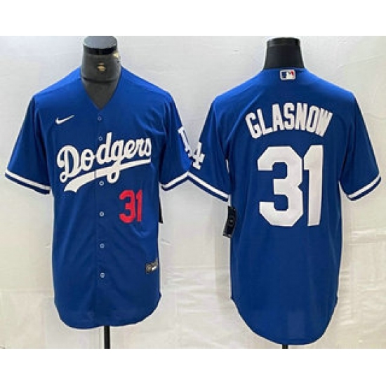 Men's Los Angeles Dodgers #31 Tyler Glasnow Number Blue Stitched Cool Base Nike Jersey
