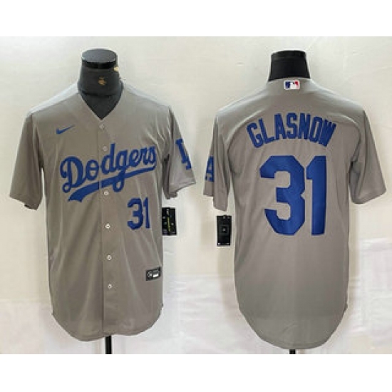 >Men's Los Angeles Dodgers #31 Tyler Glasnow Number Grey Stitched Cool Base Nike Jerseys