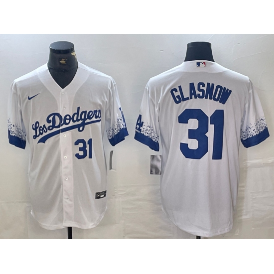 >Men's Los Angeles Dodgers #31 Tyler Glasnow Number White 2021 City Connect Cool Base Stitched Jersey
