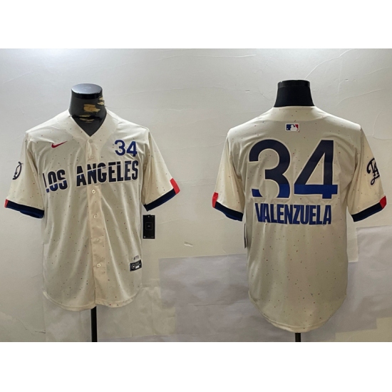 Men's Los Angeles Dodgers #34 Fernando Valenzuela Authentic Collection Stitched MLB Jersey