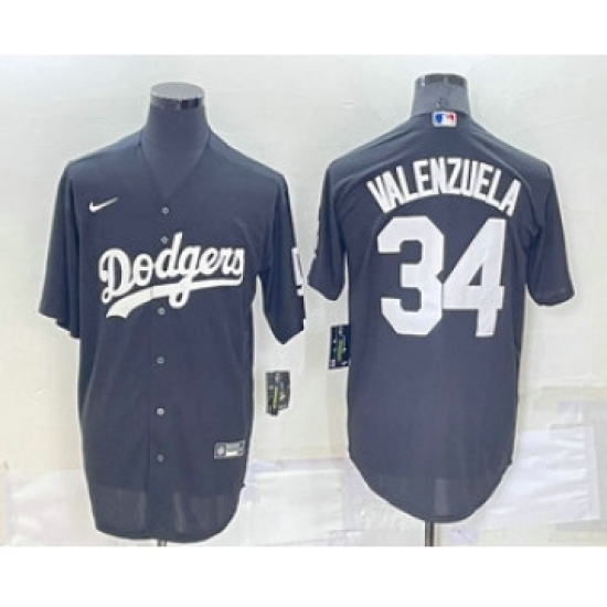 Men's Los Angeles Dodgers #34 Fernando Valenzuela Black Cool Base Stitched Baseball Jersey1