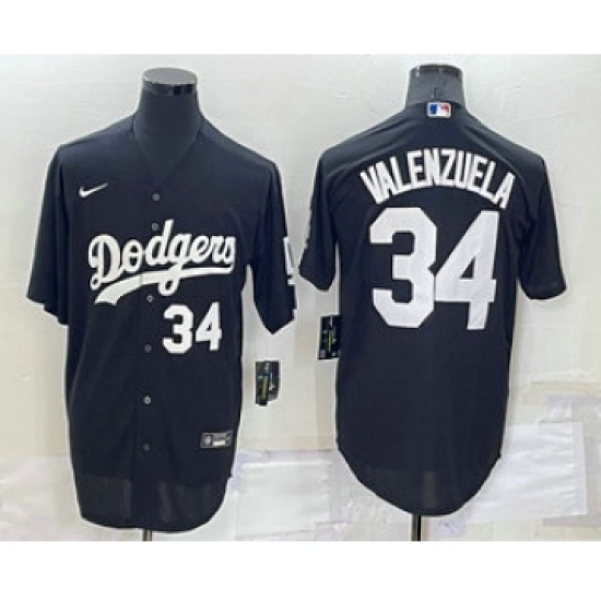 Men's Los Angeles Dodgers #34 Fernando Valenzuela Number Black Turn Back The Clock Stitched Cool Base Jersey