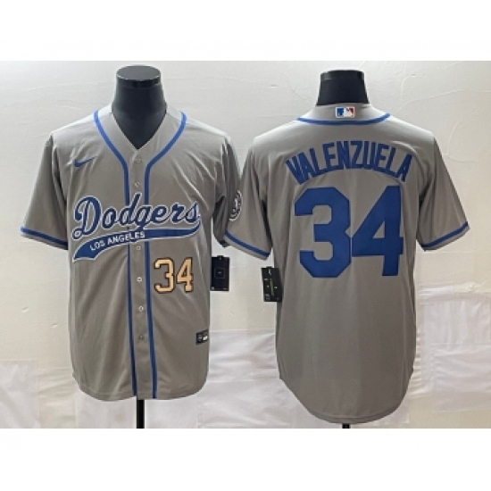 Men's Majestic Los Angeles Dodgers #34 Fernando Valenzuela Replica Grey Road Cool Base MLB Jersey