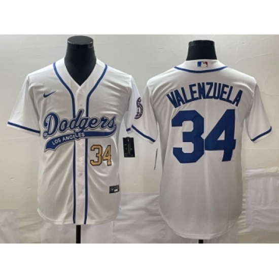 Men's Los Angeles Dodgers #34 Fernando Valenzuela Number White Cool Base Stitched Baseball Jersey