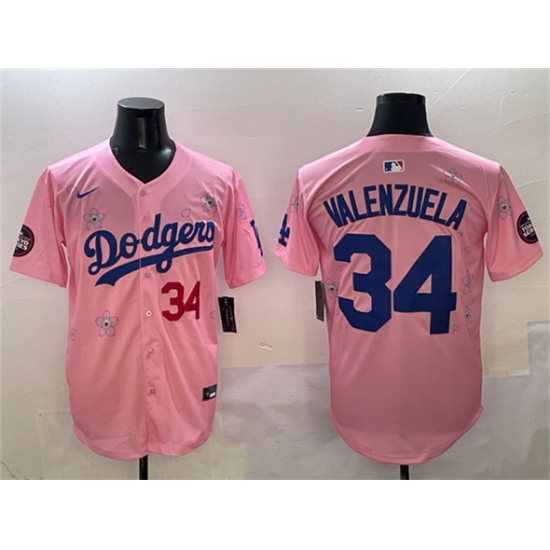 Men's Los Angeles Dodgers #34 Fernando Valenzuela Pink 2025 Tokyo Series Limited Stitched Baseball Jersey