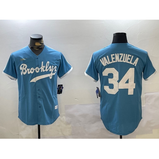 Men's Los Angeles Dodgers #34 Fernando Valenzuela blue Authentic Collection Stitched MLB Jersey