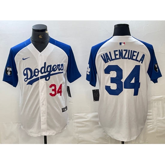 Men's Los Angeles Dodgers #34 Toro Valenzuela Number White Blue Fashion Stitched Cool Base Limited Jersey