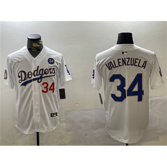 Men's Los Angeles Dodgers #34 Toro Valenzuela White Gold 2024 World Series With No. 34 Home Limited Stitched Baseball Jersey