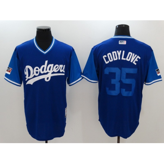 >Men's Los Angeles Dodgers #35 Cody Bellinger Royal Codylove Royal Players Weekend Team Jersey