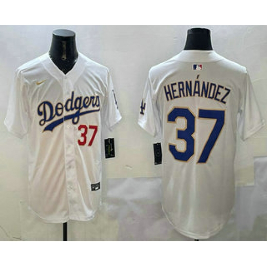 >Men's Los Angeles Dodgers #37 Teoscar Hernandez Number White Gold Cool Base Stitched Jersey