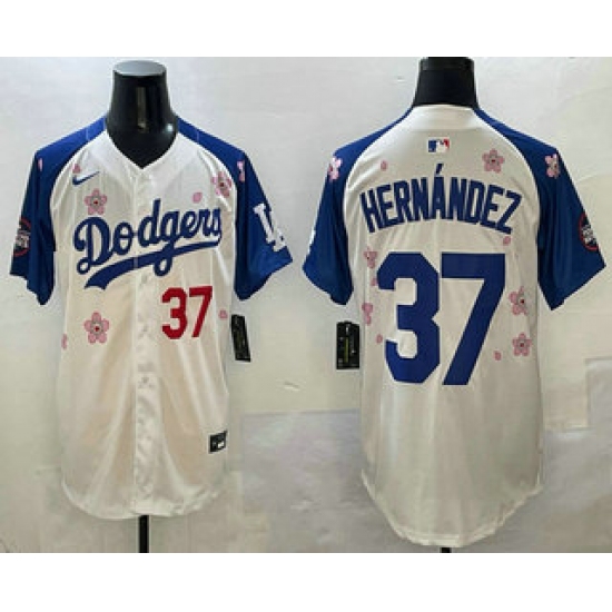 >Men's Los Angeles Dodgers #37 Teoscar Hernandez White Royal 2025 Tokyo Series Limited Stitched Jersey