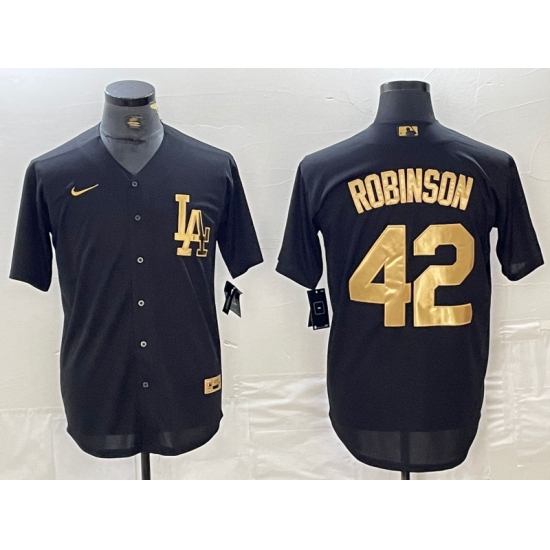 Men's Los Angeles Dodgers #42 Jackie Robinson Black Gold Cool Base Stitched Jersey