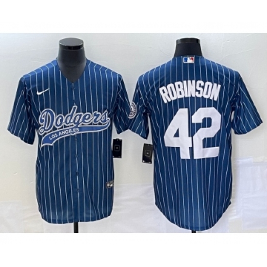 Men's Los Angeles Dodgers #42 Jackie Robinson Navy Blue Pinstripe Stitched MLB Cool Base Nike Jersey