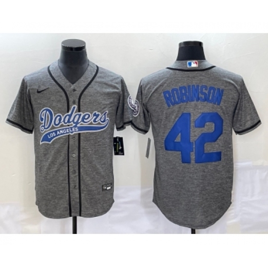 Men's Los Angeles Dodgers #42 Jackie Robinson Grey Gridiron Cool Base Stitched Baseball Jersey