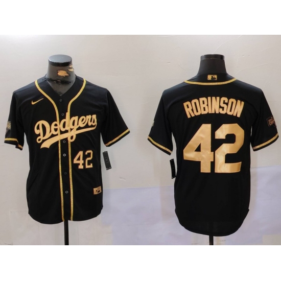 Men's Los Angeles Dodgers #42 Jackie Robinson Number Black Gold World Series Champions Cool Base Stitched Jersey