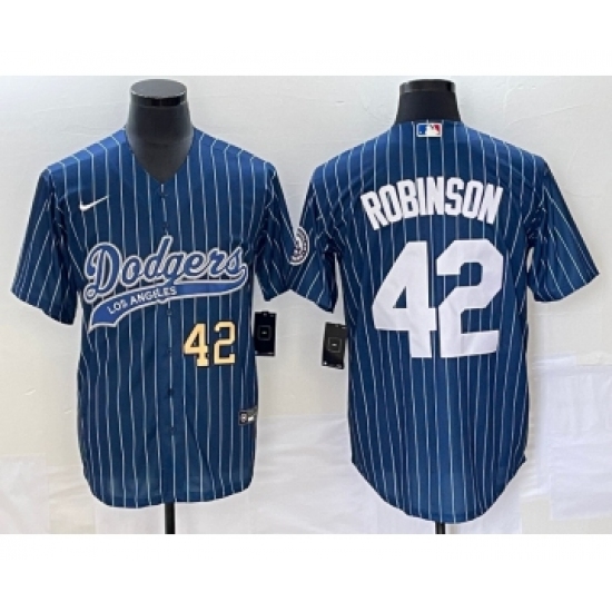 Men's Los Angeles Dodgers #42 Jackie Robinson Blue Pinstripe Cool Base Stitched Baseball Jersey
