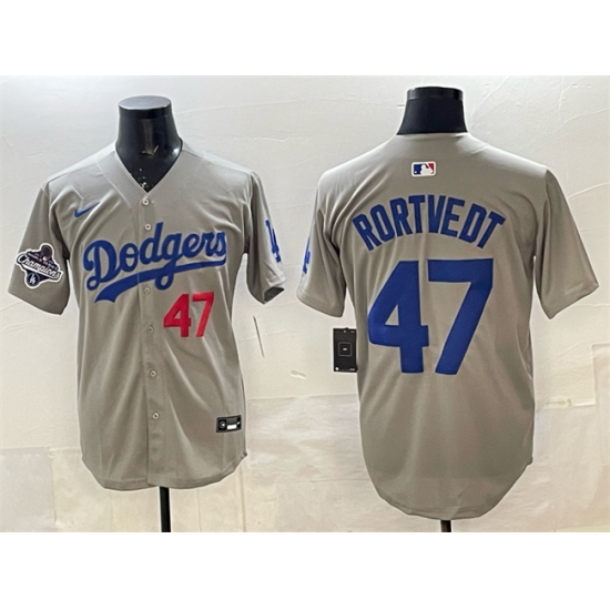 Men's Los Angeles Dodgers #47 Ben Rortvedt Gray 2025 World Series Champions Limited Stitched Baseball Jersey