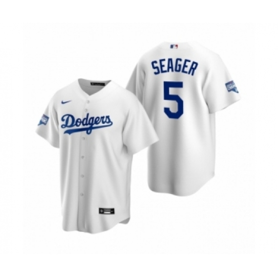 Men's Los Angeles Dodgers #5 Corey Seager White MVP 2020 World Series Champions Replica Jersey