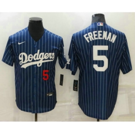 Men's Los Angeles Dodgers #5 Freddie Freeman Navy Blue Pinstripe Stitched MLB Cool Base Nike Jersey