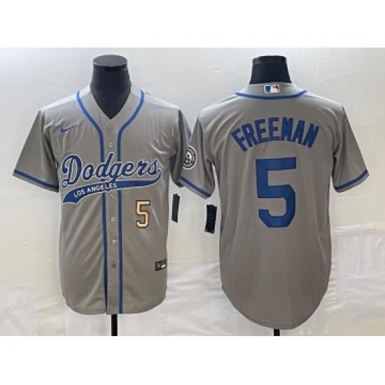 Men's Los Angeles Dodgers #5 Freddie Freeman Number Grey Cool Base Stitched Baseball Jersey