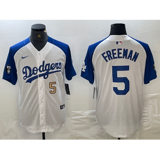 Mens Los Angeles Dodgers #5 Freddie Freeman Number White Blue Fashion Stitched Cool Base Limited Jersey
