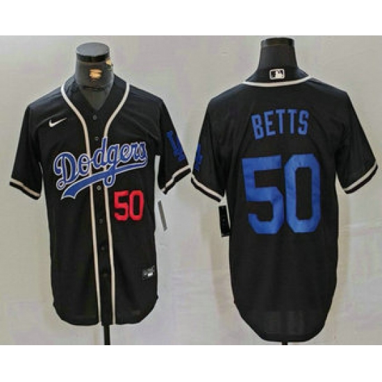 Men's Los Angeles Dodgers #50 Mookie Betts Number Black Cool Base With Stitched Baseball Jersey