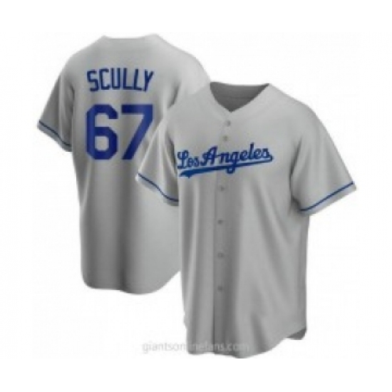 >Men's Los Angeles Dodgers #67 Vin Scully Grey With Los Stitched MLB Cool Base Nike Jersey