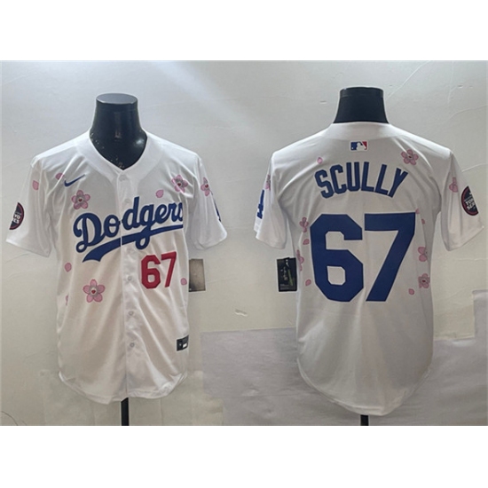 Men's Los Angeles Dodgers #67 Vin Scully White 2025 Tokyo Series Limited Stitched Baseball Jersey