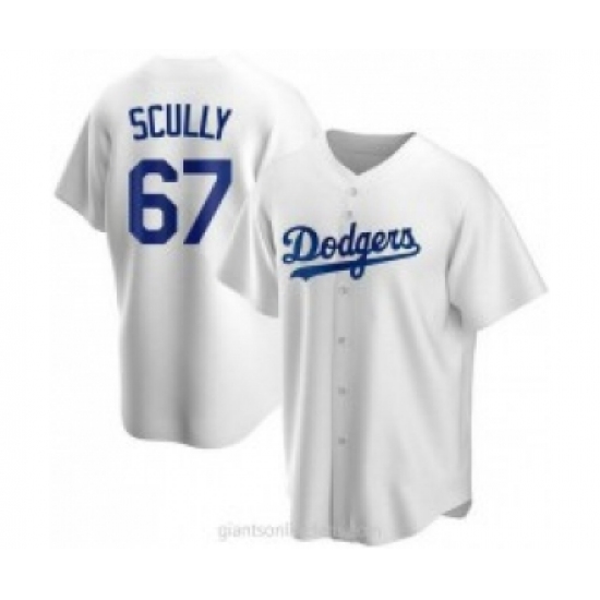 >Men's Los Angeles Dodgers #67 Vin Scully White Stitched MLB Cool Base Nike Jersey