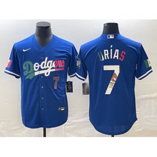 Men's Los Angeles Dodgers #7 Julio Urias Number Blue Cool Base Stitched Jersey1