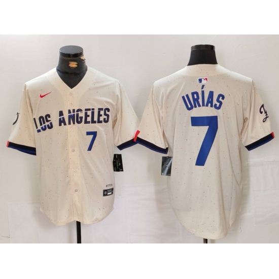 Men's Los Angeles Dodgers #7 Julio Urias Number Cream 2024 City Connect Limited Stitched Jerseys