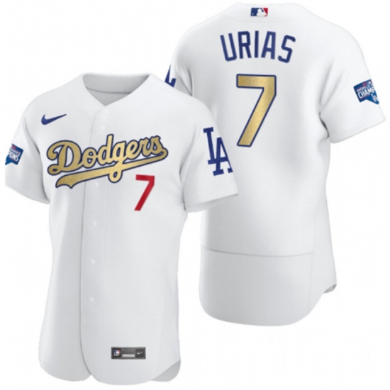 >Men's Los Angeles Dodgers #7 Julio Urias Olive Gold 2020 World Series Champions Authentic Jersey