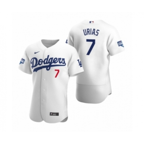 >Men's Los Angeles Dodgers #7 Julio Urias White 2020 World Series Champions Authentic Jersey