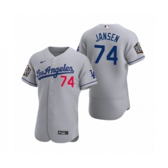 Men's Los Angeles Dodgers #74 Kenley Jansen Nike Gray 2020 World Series Authentic Road Jersey