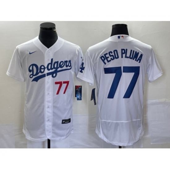 Men's Los Angeles Dodgers #77 Peso Pluma Number White Stitched Flex Base Nike Jersey