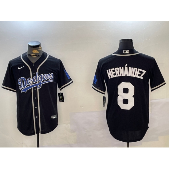 >Men's Los Angeles Dodgers #8 Enrique Hernández Black Cool Base Stitched Baseball Jersey