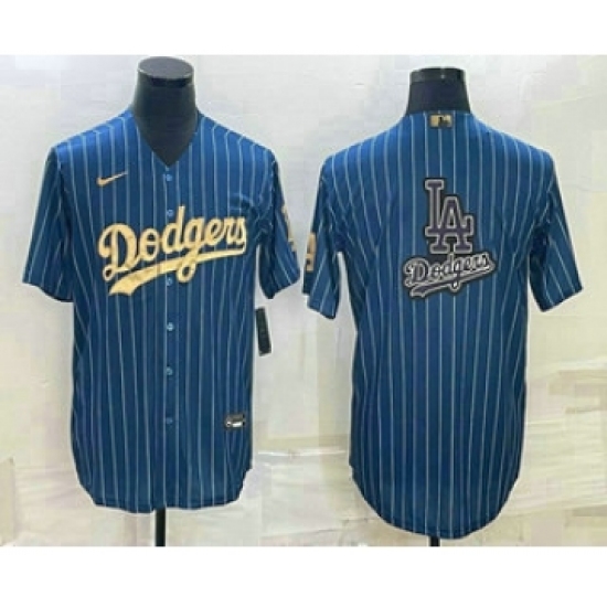 Men's Los Angeles Dodgers Big Logo Navy Blue Pinstripe Stitched MLB Cool Base Nike Jersey1