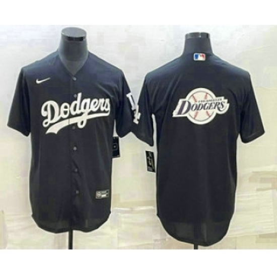 Men's Los Angeles Dodgers Black Team Big Logo Cool Base Stitched Baseball Jersey3
