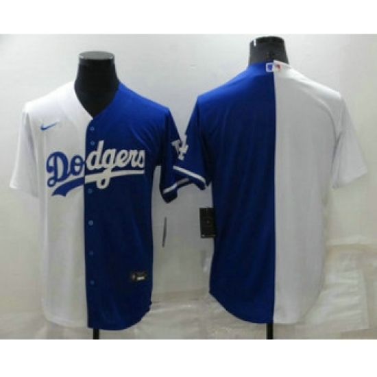 Men's Los Angeles Dodgers Blank White Blue Split Cool Base Stitched Baseball Jersey