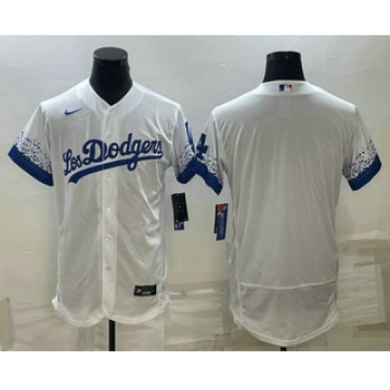 Men's Los Angeles Dodgers Blank White City Connect Flex Base Stitched Baseball Jersey