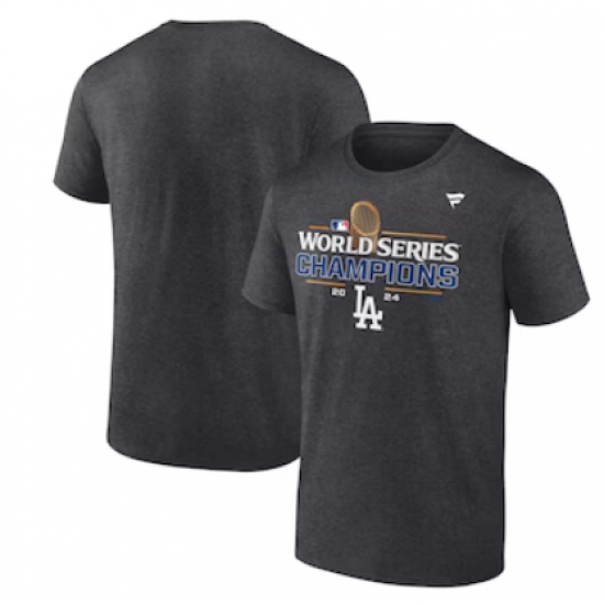 Men's Los Angeles Dodgers Fanatics Heather Charcoal 2024 World Series Champions Locker Room T-Shirt