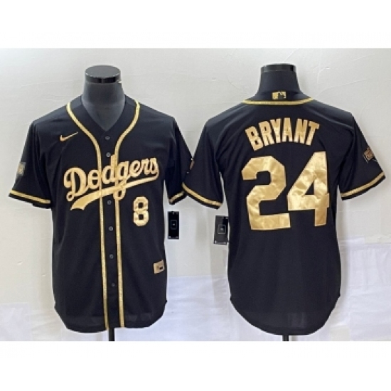 Men's Los Angeles Dodgers Front #8 Back #24 Kobe Bryant Black Gold Cool Base Stitched Baseball Jersey