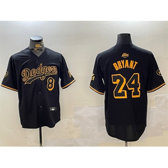 Men's Los Angeles Dodgers Front #8 Back #24 Kobe Bryant Black Stitched Jersey