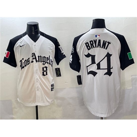 >Men's Los Angeles Dodgers Front #8 Back #24 Kobe Bryant White Black Mexico 2025 LA Gothic Style With Fernando Vapor Premier Limited Stitched Baseball Jerse
