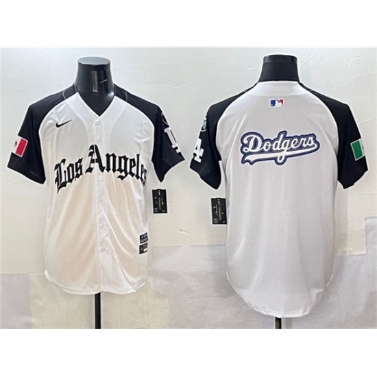 >Men's Los Angeles Dodgers Team Big Logo White Black Mexico 2025 LA Gothic Style With Fernando Vapor Premier Limited Stitched Baseball Jersey
