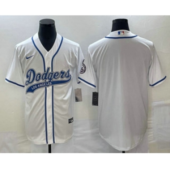 Men's Los Angeles Dodgers White Team Big Logo Cool Base Stitched Baseball Jersey1