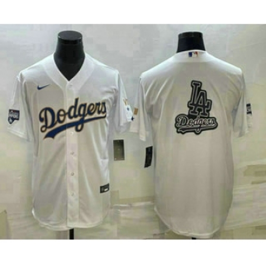 Men's Los Angeles Dodgers White Team Big Logo Cool Base Stitched Baseball Jersey1