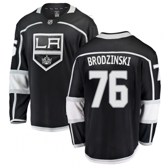 >Men's Los Angeles Kings #76 Jonny Brodzinski Authentic Black Home Fanatics Branded Breakaway NHL Jersey