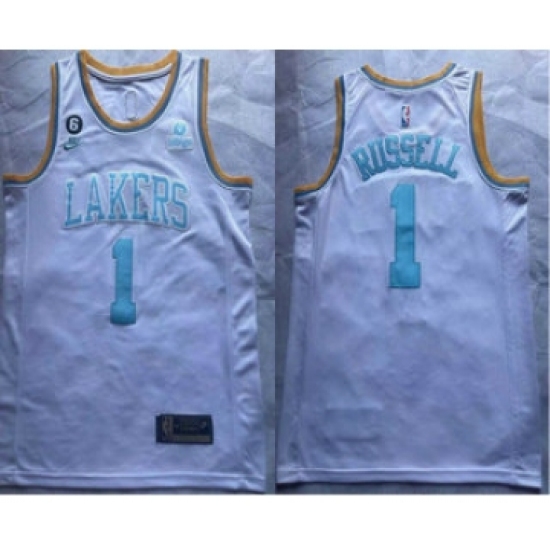 Men's Los Angeles Lakers #1 DAngelo Russell 2023 White Classic Edition With 6 Patch Stitched Basketball Jersey