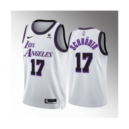 Men's Los Angeles Lakers #17 Dennis Schroder White City Edition Stitched Basketball Jersey
